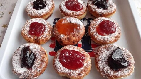 | 1 | V miske zmiešame múku s cukrom, sódou, soľou, pridáme tvaroh, vajcia, rum. Spracujeme na cesto. Na pomúčenej doske cesto vyvaľkáme asi na 1-1,5cm. Formičkou vykrajujeme kolieska o priemere 4-4,5cm. Na hornej strane vytlačíme jamku. Potom už len vyprážame, najprv vkladáme do rozpáleného oleja jamkou nadol, po opečení otočíme. Dáme na obrúsok, aby vsiakol prebytočný olej. Nakoniec plníme jamku džemom a posypeme práškovým cukrom. |